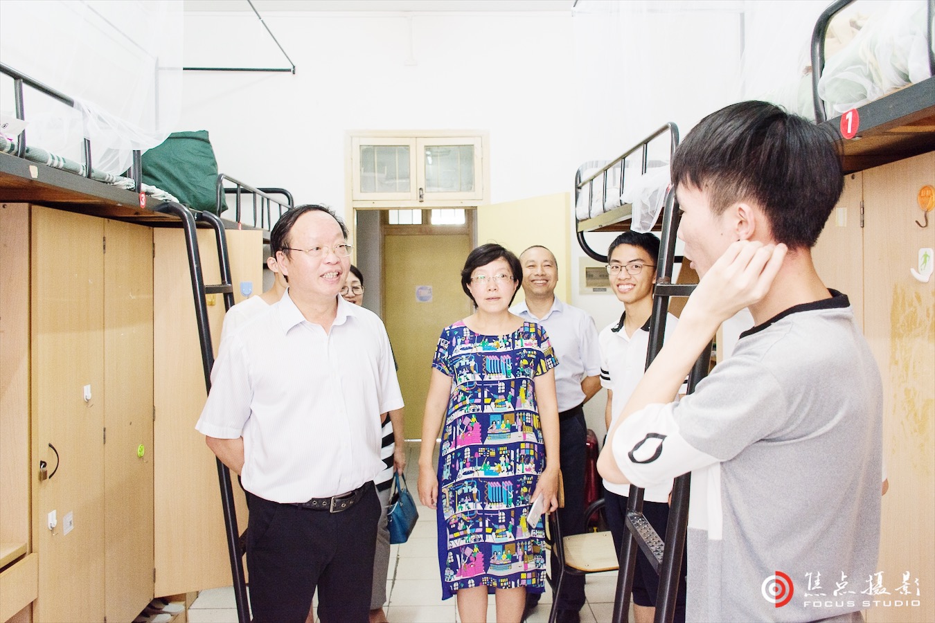 下午,杭州电子科技大学校长朱泽飞在会计学院党委书记书记谢书琴的陪同下来到新生寝室,与新同学们亲切交谈。