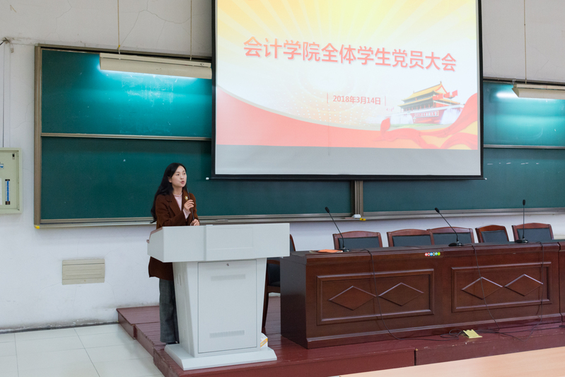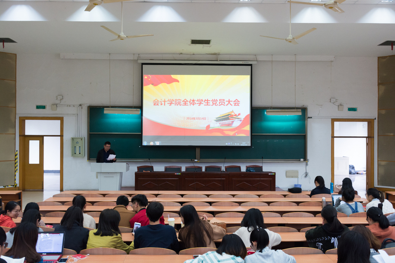2018年3月14日下午,会计学院在6教129教室召开了2018年全体学生党员大会。会计学院党委副书记王秋兰出席会议,会计学院全体学生党员参加会议。