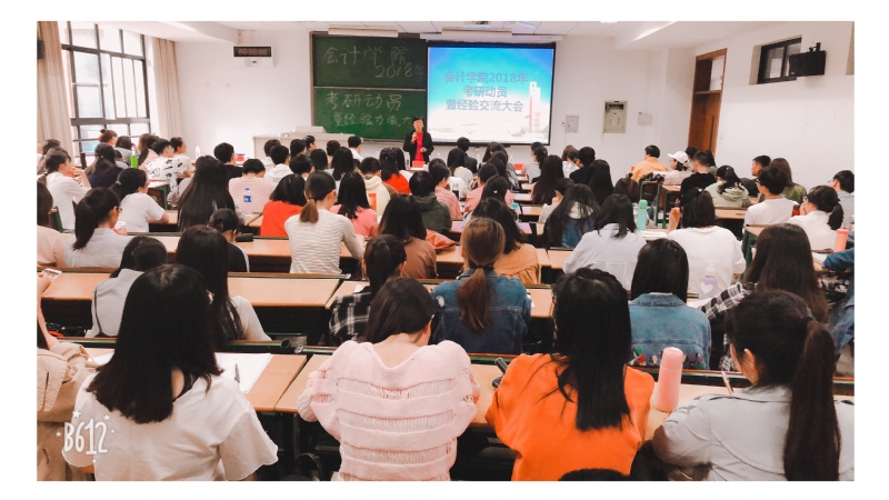 4月11日下午,会计学院2018年考研动员暨经验交流大会在第十二教研楼108室圆满结束。会计学院党委书记谢书琴、会计学院党委副书记王秋兰,会计学院副院长贾勇、审计系副主任罗春华、班主任任小军,2018届研究生录取代表李佳颖等六位优秀学生代表以及学院考研预报名学生参加本次大会。