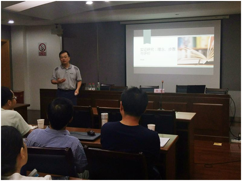 2018年7月3日,上海财经大学会计学院副院长朱凯教授应邀参加会计学院第二期学术夏令营活动,在科技馆8号会议室进行主题为“实证会计研究方法”专题讲座。此次讲座由我院贾勇副院长和燕洪国副院长共同主持,聆听讲座的有会计学院全体教师与研究生。