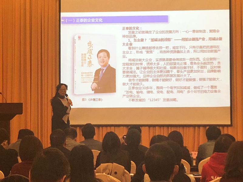 首先,杭州电子科技大学张明明教授做了《“两化促两化”环境中成本管理信息化创新的攻坚——正泰“数字驱动的精细化成本核算与绩效评估系统”的研究》为主题的报告。张教授以正泰为案例,提出了中华民族传统文化和企业文化铸就了正泰可持续发展的根基的观点。同时,张教授认为两化融合成为正泰快速发展的引擎,进一步分析了成本管理信息系统面临的挑战以及应战的策略。