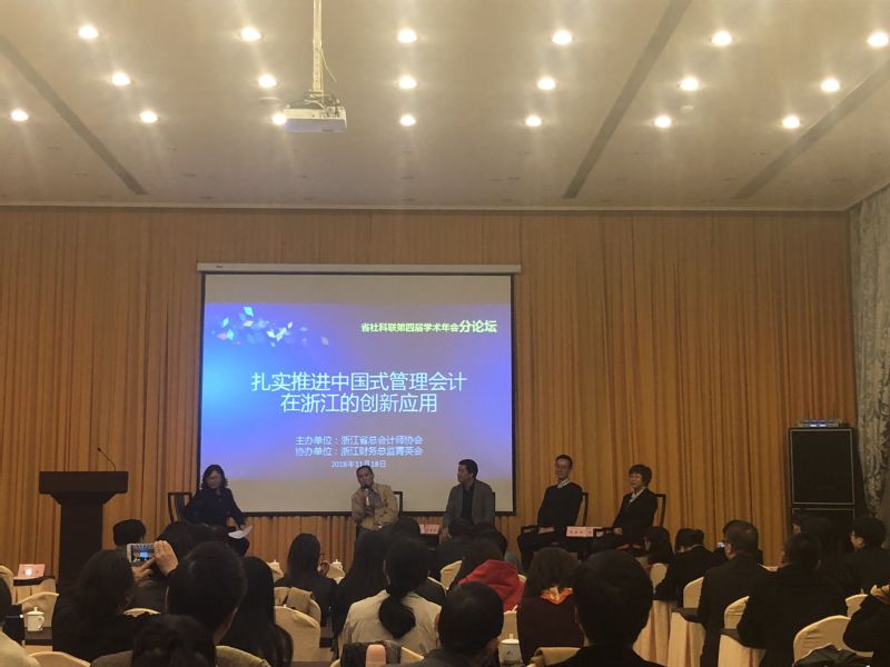 2018年11月18日,扎实推进中国式管理年会在浙江的创新应用暨省社科联第四届学术年会分论坛在浙江赞成宾馆副楼八楼会议室顺利召开,我院10名研究生代表参加。本次论坛由浙江省会计师协会主办,浙江财务总监精英会协办,旨在通过学习专题研讨的形式,交流中国式管理会计在浙江的创新应用与实践,提升我省大中型企事业单位管理会计应用水平。此次活动由中国总会计师协会理事、浙江省总会计师协会常务理事、我院硕士生企业导师俞乐平主持。