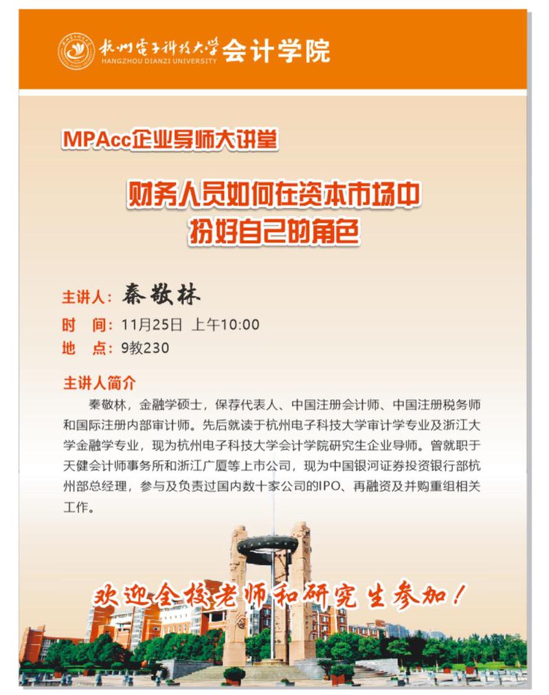 MPAcc企业导师大讲堂:财务人员如何在资本市场中扮好自己的角色