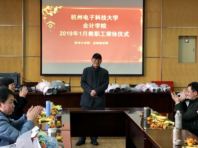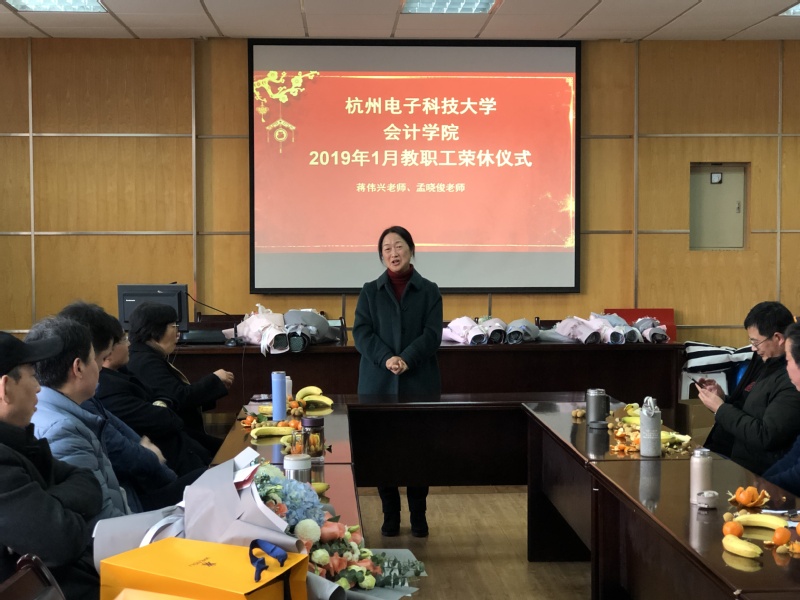 莫道桑榆晚,余霞尚满天。茶话会上首先为1月退休的教职工举办荣休仪式,院党委书记谢书琴代表学院全体师生为2019年度光荣退休的蒋伟兴老师和孟晓俊老师献上鲜花并送上诚挚的祝福。谢书琴表示,两位老师将青春献给了学院,把热情注入了工作,为学院的建设和发展做出的贡献,为学生的成长成才倾注心血;他们是学生口中的好老师,也是教职工学习的榜样。两位老师先后向学院表达谢意和不舍,他们感恩学院数十年的培养,感谢领导的关心和同事的陪伴。