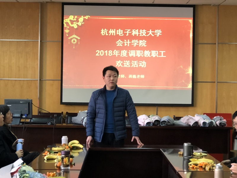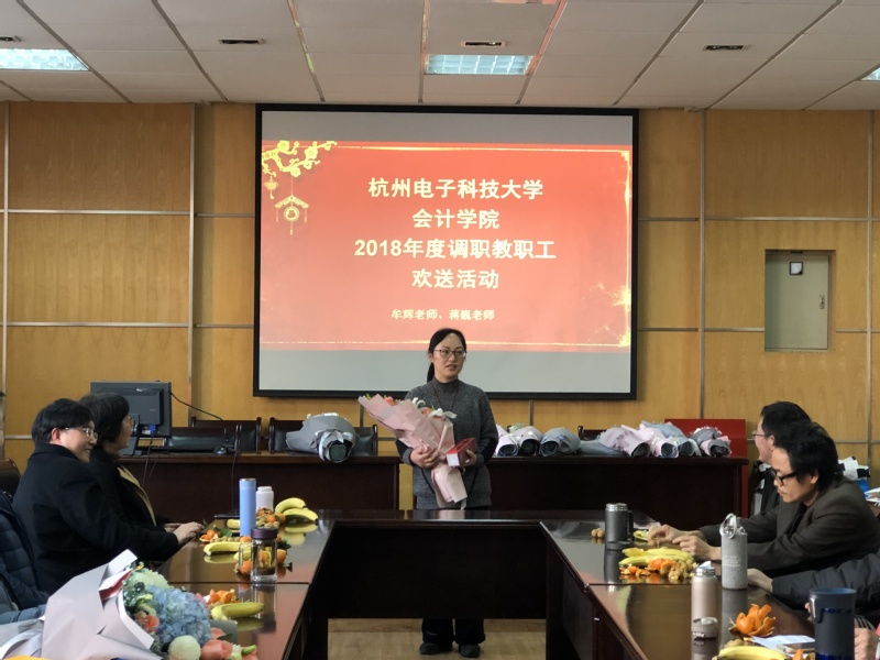 紧接着,为学院调职教职工举办欢送仪式。副院长贾勇为蒋巍老师送上鲜花,并祝愿他们能在新的岗位上继续发光发热,有时间常回学院看看。“感谢学院对我的培养和挽留,相信学院在领导班子的带领下,可以建设的越来越好。”蒋巍老师说到。