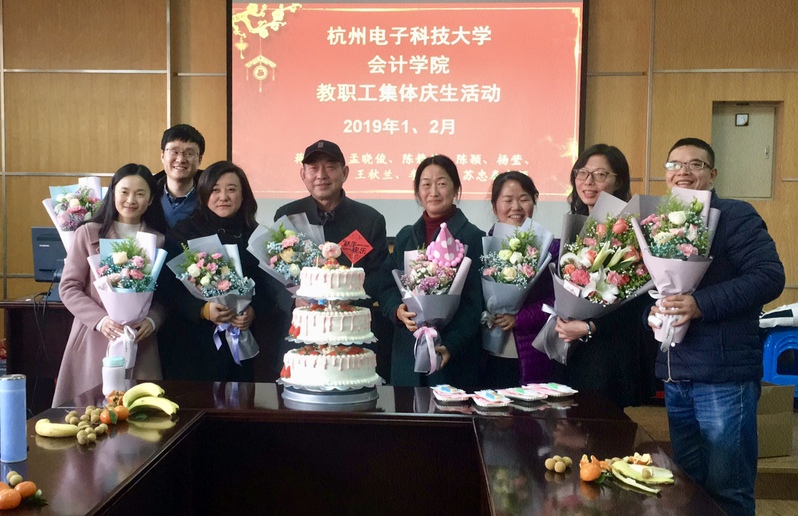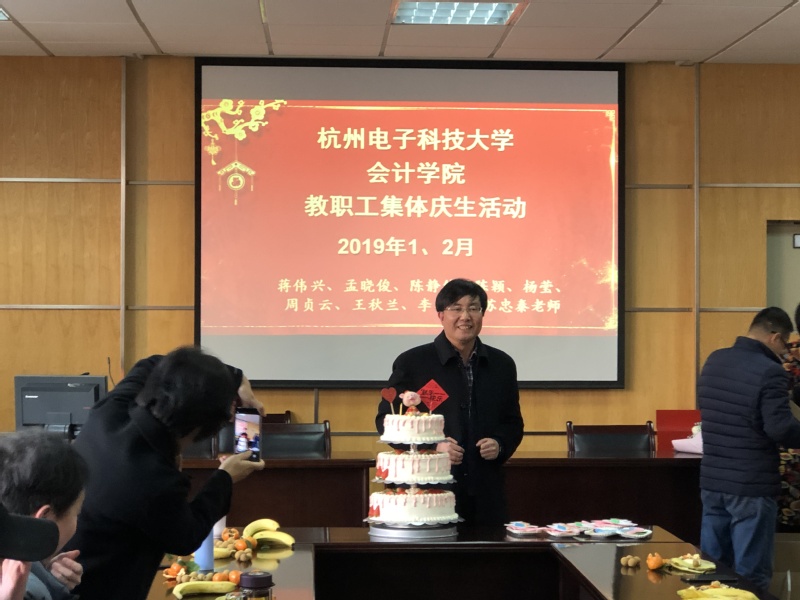 最后,学院为1月份生日的学院全体教职工举办集体生日活动,“第一次和这么多的同事一起过生日,一起唱生日歌,一起吃蛋糕,很开心。暖心的学院,棒棒的工会。”刚转入学院的陈颖老师说到。“我和李冬姝老师居然是同年同月同日生的,好有缘分!”学院党委副书记王秋兰老师激动的说到。院长肖作平代表学院对老师送上生日的祝福,他表示这种氛围是在他以前单位所没有感受过的,希望学院工会以后多组织这些活动,营造暖心和谐的学院氛围。