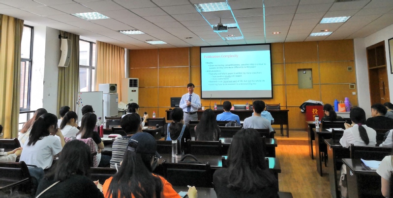 会计学院第三期学术夏令营6月18日正式启动。18日上午,美国乔治亚州立大学博士、密苏里大学圣路易斯校区商学院杰出教授冯鸿玑在9教230作了题为“Writing scholarly papers”的专题讲座。讲座由会计学院苏忠秦副院长主持,会计学院部分教师及研究生参加讲座。