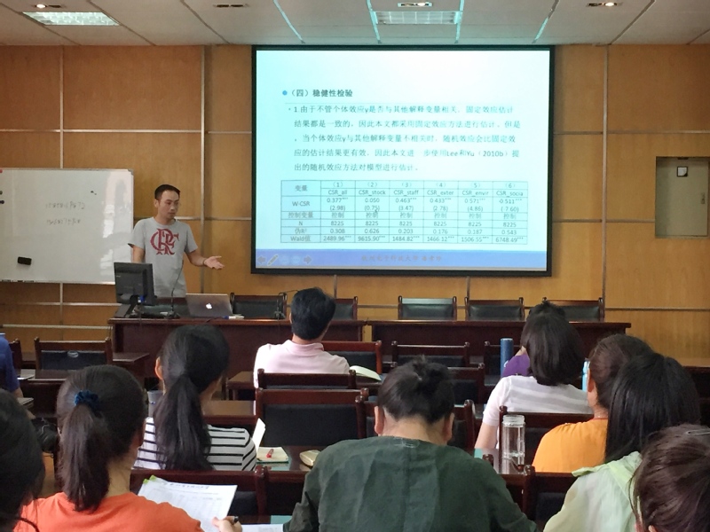 9月18日下午,我院在9教230开展了第一次学术沙龙活动,由潘孝珍老师主讲空间计量的理论与应用,就《企业社会责任可以相互传递吗?——基于沪深A股上市公司的空间计量分析》作了精彩分享。