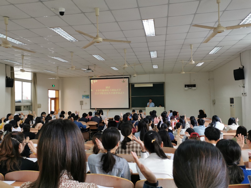 2019年10月23日下午,中共杭州电子科技大学会计学院党员大会在6教北102教室顺利召开。学校党委副书记朱斌以普通党员身份出席会议,学院全体师生党员参加,校党委组织部相关工作人员莅临指导。