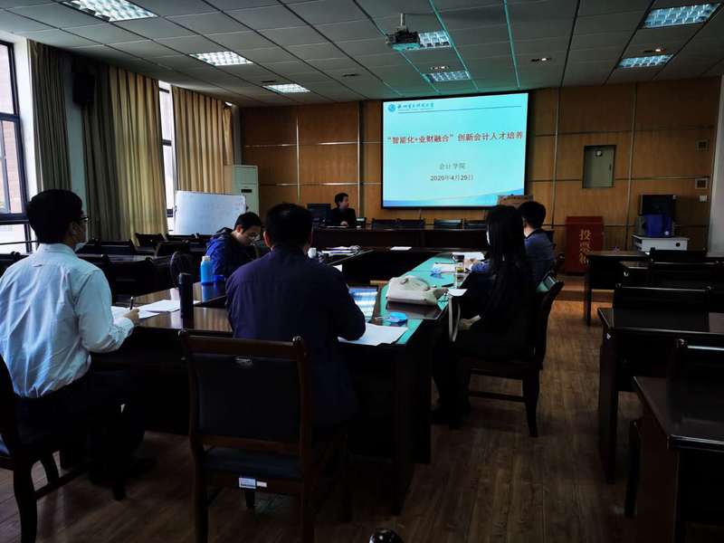 为深化智能化+业财融合会计人才培养,适应新经济发展和服务产业转型升级,创新人才培养模式,提高人才培养质量,我院于4月29日上午在第九教学科研楼230会议室召开2020级智能会计人才培养方案讨论会。会议由学院副院长贾勇老师主持,学院各系(中心)正副主任参会。