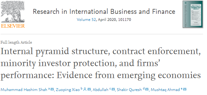 (2)Internal pyramid structure, contract enforcement, minority investor protection, and firms' performance: Evidence from emerging economies