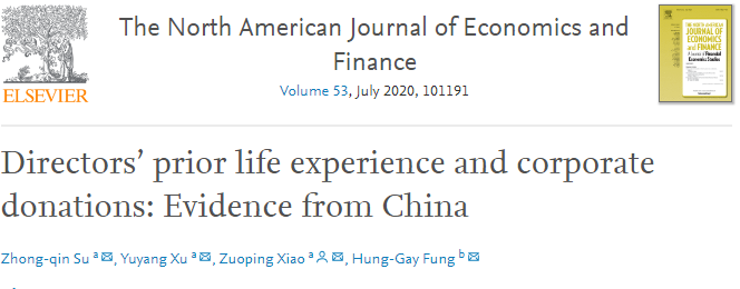 近日,肖作平教授团队以第一作者或者通讯作者身份又有两篇学术论文“Directors' prior life experience and corporate donations: Evidence from China”,“Internal pyramid structure, contract enforcement, minority investor protection, and firms' performance: Evidence from emerging economies”分别发表于国际SSCI期刊NORTH AMERICAN JOURNAL OF ECONOMICS AND FINANCE(JCR 2区)和RESEARCH IN INTERNATIONAL BUSINESS AND FINANCE(JCR 2区)。