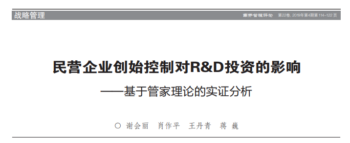 我院谢会丽副教授、肖作平教授学术论文《民营企业创始控制对R&D投资的影响——基于管家理论的实证分析》发表于重要学术期刊《南开管理评论》。