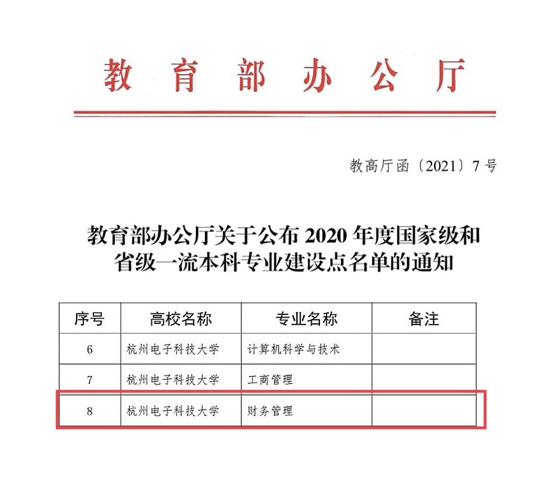 近日,教育部公布2020年度国家级和省级一流本科专业建设点名单,我院财务管理专业获批国家级一流本科专业建设点。加上2019年度首批入选的会计学专业,会计学院现已有两个国家级一流本科专业建设点。一流本科专业建设“双万计划”是教育部实施“六卓越一拔尖”计划2.0的重要内容,是做强一流本科、建设一流专业、培养一流人才的重要举措。