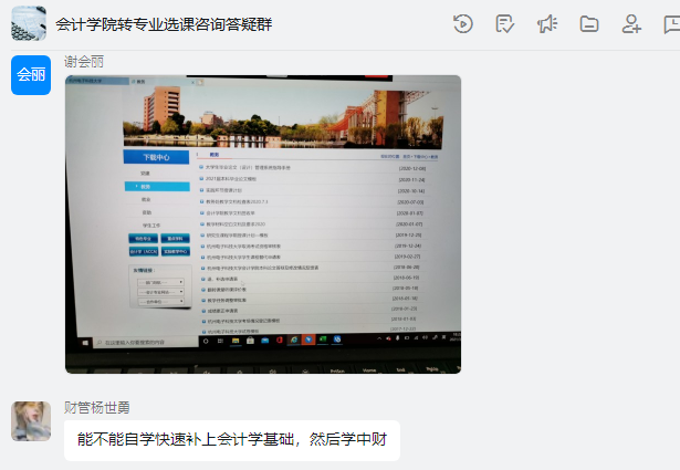 随后,针对同学们在钉钉群提出的问题,谢会丽老师一一进行了解答,并就签课、课程替代等流程问题予以指导。最后,辅导员盖玉洪老师就此次答疑交流会做出总结,并对全体2020级转专业学生的到来表示欢迎。