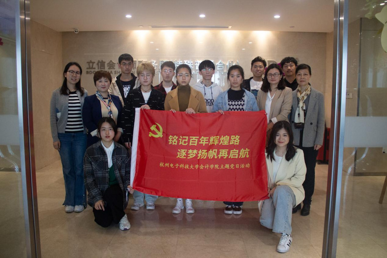 4月16日上午,会计学院师生党员代表走进校示范性大学生校外实践教育基地——立信会计师事务所(特殊普通合伙)浙江分所开展“铭记百年辉煌路,逐梦扬帆再起航”主题党日活动。立信会计师事务所浙江分所合伙人俞伟英、人力资源部经理王静及立信浙江分所党员代表、杭电校友参加活动。