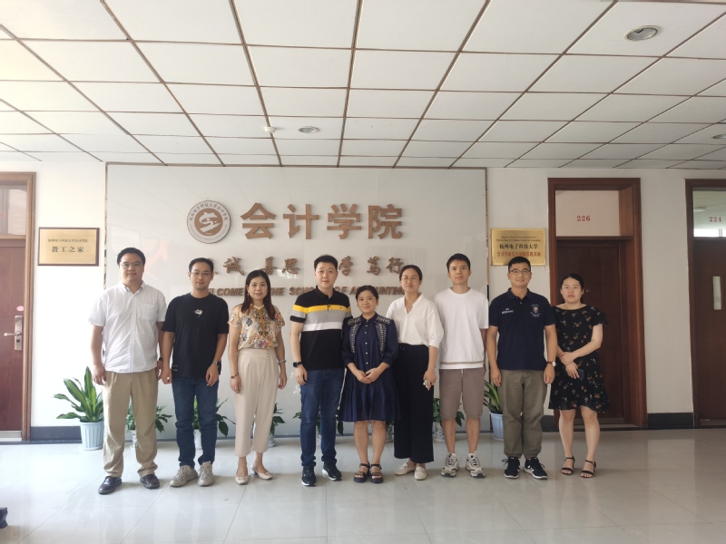 2021年9月23日上午,温州商学院管理学院副院长吴肖蓉、会计系主任陈芒芒、财务管理系主任朱凤,市场营销系主任罗列英、商学院信息服务中心潘显准一行5人来我院交流。会计学院副院长贾勇、会计系主任谢会丽、财务管理系副主任程颖和潘孝珍、会计信息和实验中心何鑫萍等参加了本次会议。会议由贾勇副院长主持。