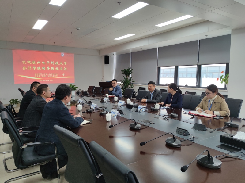 首先,苏忠秦副院长介绍了学院的基本情况,包括我院研究生的培养方式与特色。并对未来与温州医科大学附属第二医院共同开展研究生实习和实践工作进行了展望。蔡战英副院长对杭州电子科技大学会计学院老师和同学的到来表示了欢迎,并向大家详细展示了温州医科大学附属第二医院的院系发展和专科特色,希望能够推进医院业财融合的发展,与学院展开深入的合作与交流。