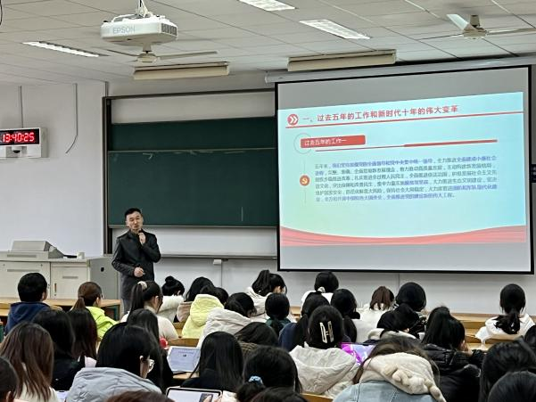 学院党委充分发挥理论学习中心组学习带头作用,班子成员带头深入支部、系部、班级、社团等开展党的二十大精神宣讲活动。11月3日,学院党委书记徐兵老师为师生党员讲授“永远跟党走,奋进新征程”的专题党课,对二十大报告作了全面解读。11月29日,会计学院党委副书记、纪委书记在学院230会议室召开学院纪检委员工作培训会,宣讲二十大精神。11月30日,学院邀请学校马克思主义学院二十大精神宣讲团成员赵杰艺以“以中国式现代化全面推进中华民族伟大复兴”为主题宣讲党的二十大精神。同时,我院思政教师和团学骨干也迅速推进各类宣讲,11月23日,学院团委副书记金冠舟以“我学二十大,奋进新征程”为主题展开宣讲。党的二十大精神“00后”talker宣讲团成员毛索尔、孙欣逸、谢礼扬也以“我学二十大,奋进新征程”为主题展开宣讲,从不同角度深入解读党的二十大精神。