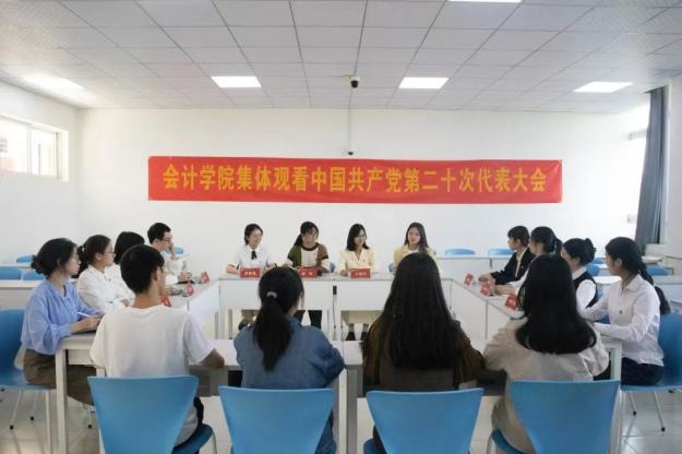 学院党委、理论中心学习组以及各党团支部通过主题党日活动、学习交流会等形式认真学习党的二十大报告,畅谈思想感悟。11月2日,会计学院理论学习中心组召开党的二十大报告专题学习会。11月上旬,各党支部组织通过“三会一课”、二十大专题党课和主题党日活动,分专题开展不同形式的交流研讨。11月25日,学院党员之家组织党员代表、学生代表开展中国共产党第二十次全国代表大会精神集体学习讨论会。11月16日,学院团委以“我学二十大,奋进新征程”为主题开展学生骨干座谈会。会计学院团委举办“喜迎二十大、永远跟党走、奋进新征程”主题团日活动、开展“学习宣传二十大,青春奋进新征程”2022年思政微课大赛决赛暨党的二十大精神首场巡讲。