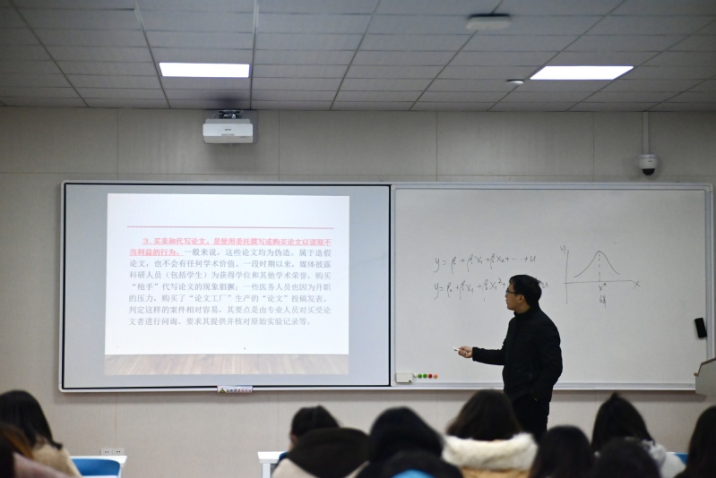 12月7日晚,我院研究生学术道德教育专题讲座在7教北408举行,本次讲座邀请到硕士生导师尹林辉主讲,2022级研究生参加。