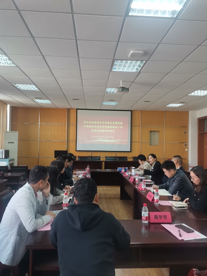 随后,桂林电子科技大学商学院副院长花均南和副书记师晓婧对学院的热情接待表达感谢,并表达希望通过此次交流,为桂林电子科技大学商学院的学院建设汲取优秀的工作经验,双方就专业方向课程设置、创新实验班建设、实验室建设和学生工作等方面进行了深入交流,并参观了我院的专业实验室。
