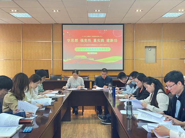 4月28日下午15:00,会计学院在力行楼230会议室组织召开学习贯彻习近平新时代中国特色社会主义思想主题教育工作部署会。学院中层领导干部、党委委员、师生党支部书记参加会议。会议由学院书记徐兵主持。
