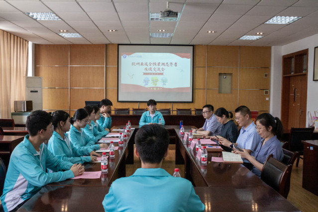 党委副书记贾鹏飞亲切询问大家在志愿服务过程中的困难及要求,对志愿者的艰辛付出表示感谢。他提醒志愿者平衡好学习工作与生活,有问题及时跟学院老师沟通,并期待每个志愿者都能牢记徐书记的嘱托,扛起责任,服务好亚运赛事,在赛事中开阔眼界,在服务中获得成长。