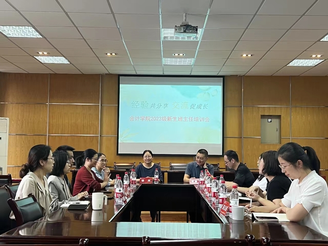为进一步加强班主任队伍建设,提升班主任工作能力和育人水平,9月22日下午,会计学院举办2023年秋季学期班主任专题培训会。学院党委书记徐兵,党委副书记、纪委书记贾鹏飞,校心理健康教育中心聂雪林,学院优秀班主任代表潘孝,以及学院班主任、各年级辅导员参加了此次会议。