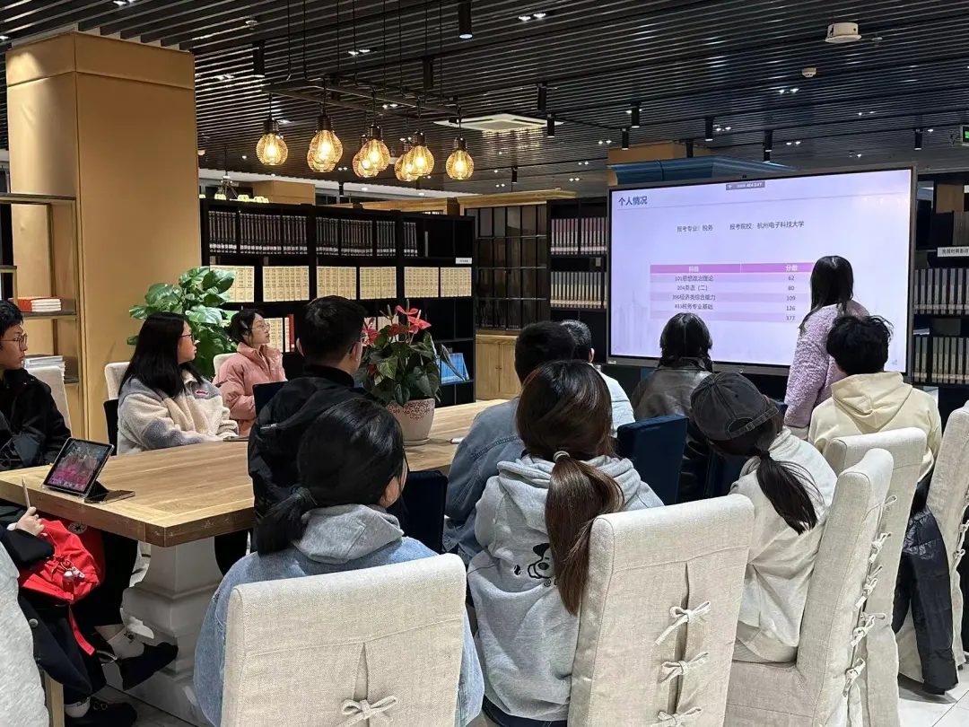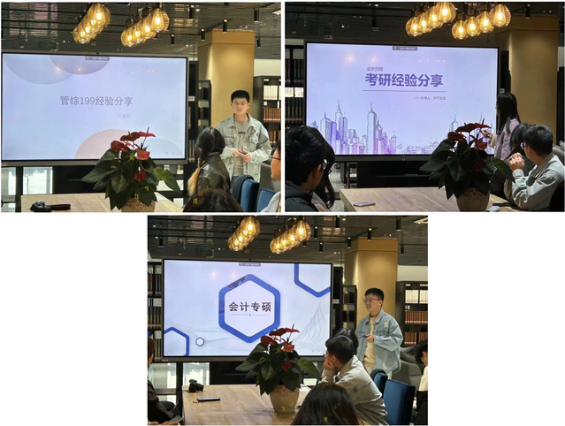 活动中,叶嘉政同学分享了自己的考研经验,强调了英语词汇、语法和历年分数线的重要性,并鼓励同学们在备考过程中保持良好的心态。刘成烨同学分享了会计专硕考试和管理类联考的备考重点,并强调了对知识点的深入学习。萨巴哈提·艾麦提同学则详细介绍了经济类专硕考研的备考流程和推荐书目。参与同学均表示受益匪浅,同时大家也进行了深入详细的互动问答。