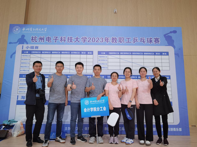 2023年11月22日,2023年年度杭州电子科技大学工会乒乓球赛开赛。在院党委书记徐兵、院党委副书记贾鹏飞、副院长贾勇、院工会主席程文婷的大力支持下,我院多年后重新独立组队参赛。此次比赛分小组赛和淘汰赛两阶段。在小组赛阶段,我院先后迎战机械工程学院、计算机学院、管理学院和网络安全学院。
