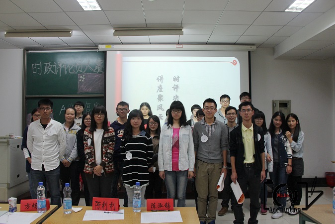 10月30日晚,时政评论员大赛A赛区复赛在第12教研楼303举行。应邀担任本次比赛评委的有:信息工程学院中国特色主义理论体系读书会副会长陆洋溢,经济学院中国特色主义理论体系读书会会长陈泓锡,信息工程学院中国特色主义理论体系读书会会长董钢钧,管理学院中国特色主义理论体系读书会副会长陈利利,校中国特色主义理论体系读书会学习部副部长方炀毅。