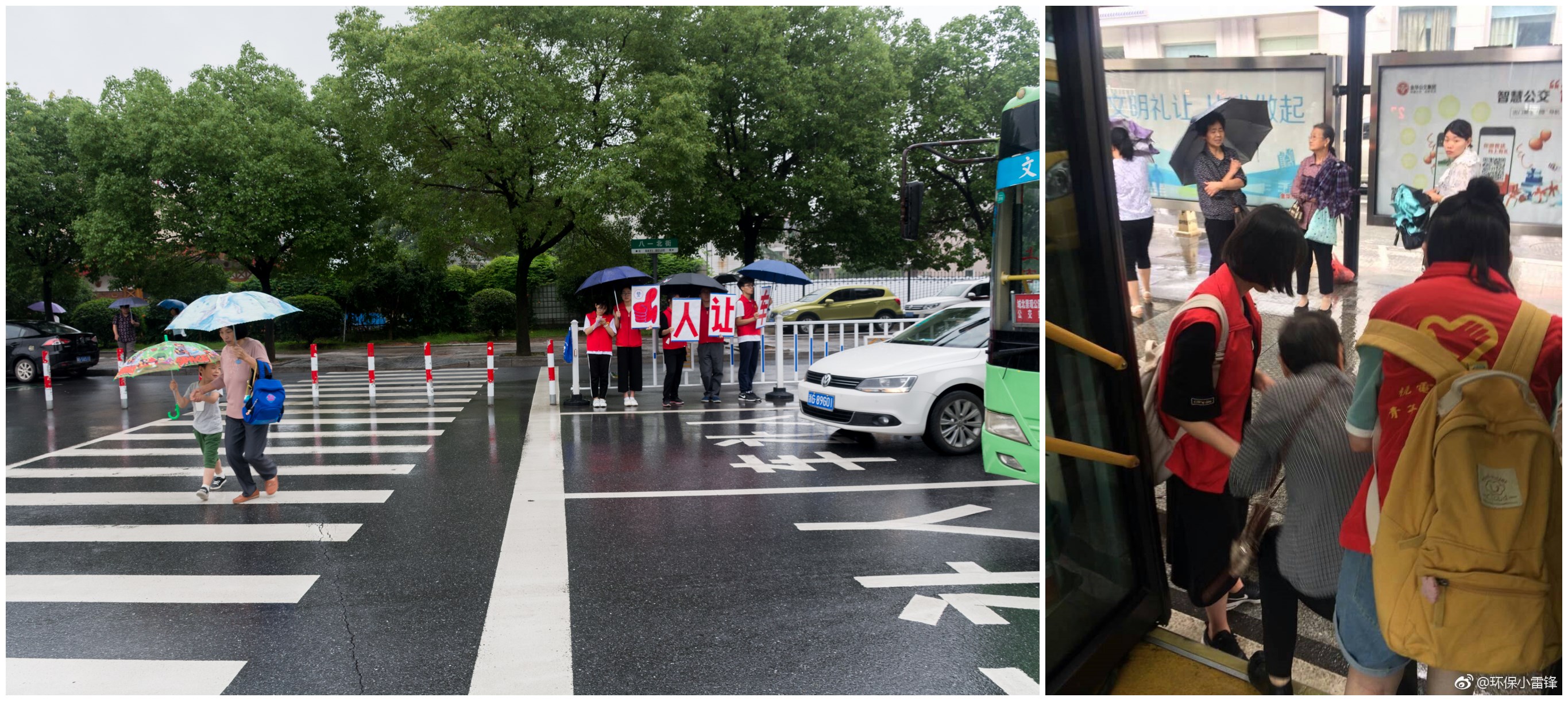 6月26日上午,我们学雷锋团队兵分两路。一支队伍两两组合上27路公交车,体验雷锋服务线,同时作为志愿者服务上车乘客。这路公交车司机都很有热心,乘客关系也和谐融洽,大家互相帮助、礼让座位。值得一提的是,司机每看到路人过马路都会停下车来让行人先行,事情虽小,但充满爱心;另一支队伍在十字路口手持“车”“让”“人”“赞”的标语,同时统计礼让行人的车辆数目。在这一期间,有些司机特地摇下窗户冲我们比赞,还有很多行人也对我们大加赞许。而我们也明白,社会实践并不一定要多大规模,多少投入,只要有心且实实在在的服务,正如曹爷爷说的:“学习雷锋精神,就是要做社会需要,人们欢迎,自己快乐的事情。”