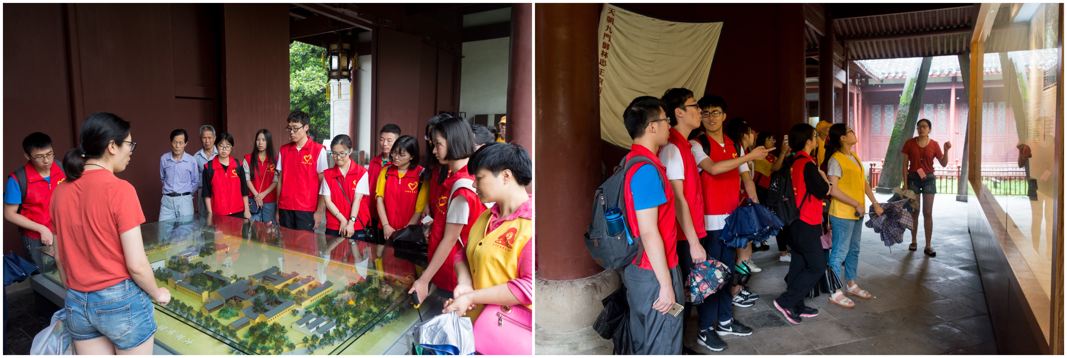 下午,我们来到太平天国侍王府遗址,深入了解了侍王李世贤传奇的一生,同时观赏了府内巧夺天工的壁画和布局。曹老对历史深有感触,他说今年是香港回归20周年,我国因战败被迫割让香港,是民族的耻辱,我们应牢记,落后就要挨打,从青少年开始,怀着一颗热爱祖国的心,全心全意为人民服务,将学习雷锋精神融入生活中。