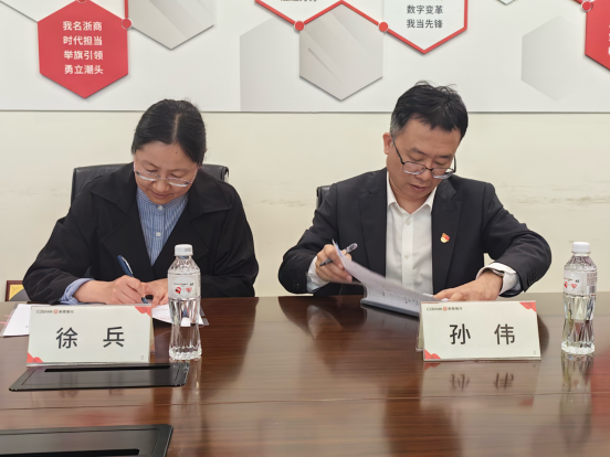 为深入学习贯彻习近平新时代中国特色社会主义思想,全面贯彻党的二十大精神,进一步深化校银合作,实现优势互补、协同育人,4月3日下午,会计学院党委与浙商银行杭州城西支行党支部举行了党建共建合作签约仪式。浙商银行杭州城西支行党支部书记、副行长(主持工作)孙伟,副行长马雁越,行长助理樊朝刚及业务经理代表,会计学院党委书记徐兵,党委副书记、纪委书记贾鹏飞,组织员王立良、学工办主任郦剑英及支部书记代表出席签约仪式。