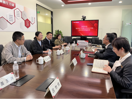 徐兵就办学历史、专业建设、学科特色、师资力量等方面进行介绍,并向浙商银行城西支行对杭电会计学院的支持和人才培养的认可表示衷心感谢,希望双方以党建为引领,以共建为契机,加强互联互动,有效整合资源,打造新时代校企党建共融新高地。