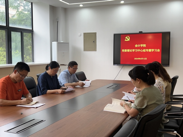 6月12日上午,会计学院党委召开2024年党委理论学习中心组召开专题学习会,举行《中国共产党纪律处分条例》、习近平总书记为第六批全国干部学习培训教材所作的《序言》精神、浙江省优秀传统文化等专题学习会议。学院党委书记徐兵主持并领学,学院党委理论学习中心组成员和支部书记参加会议。