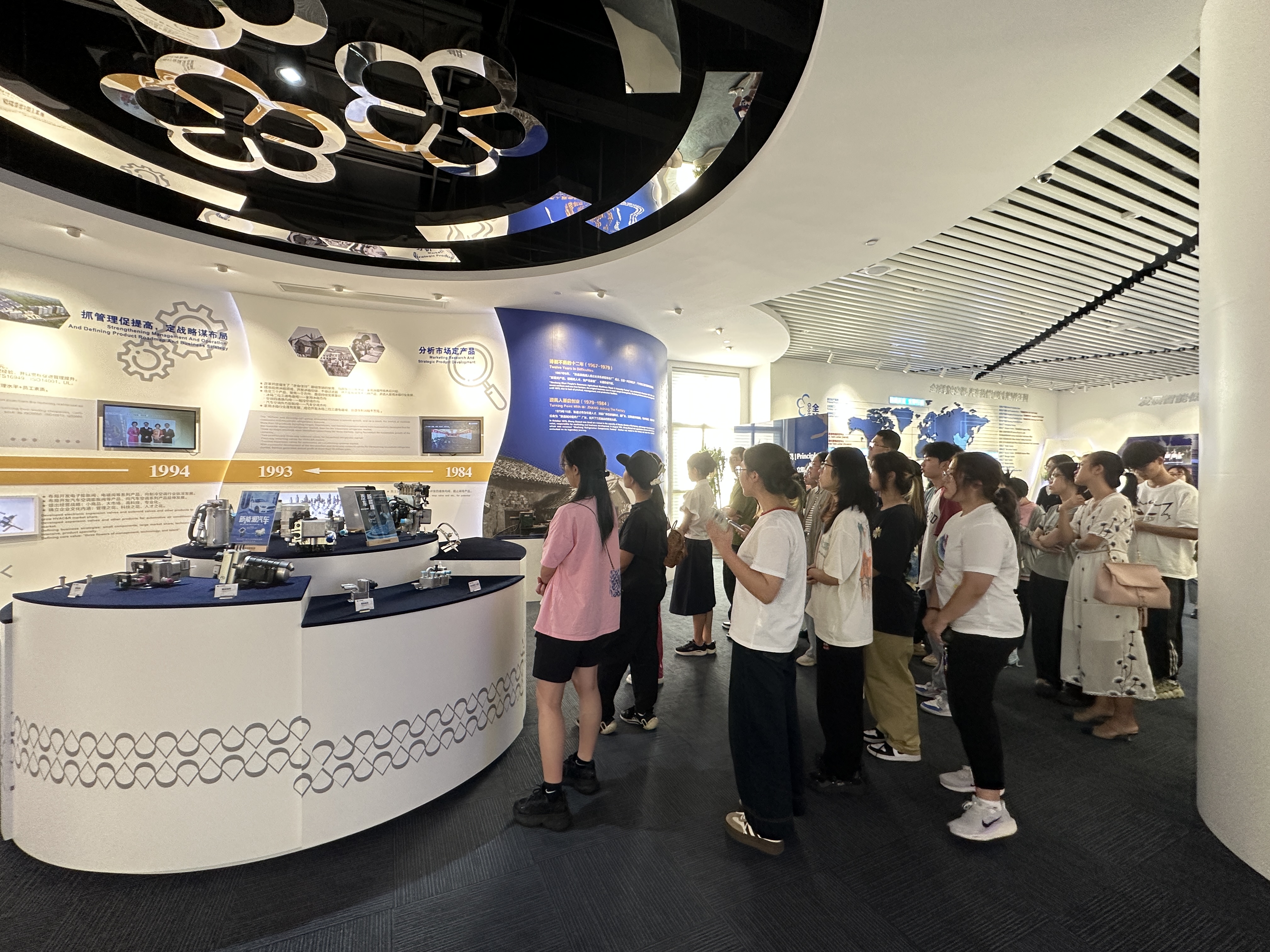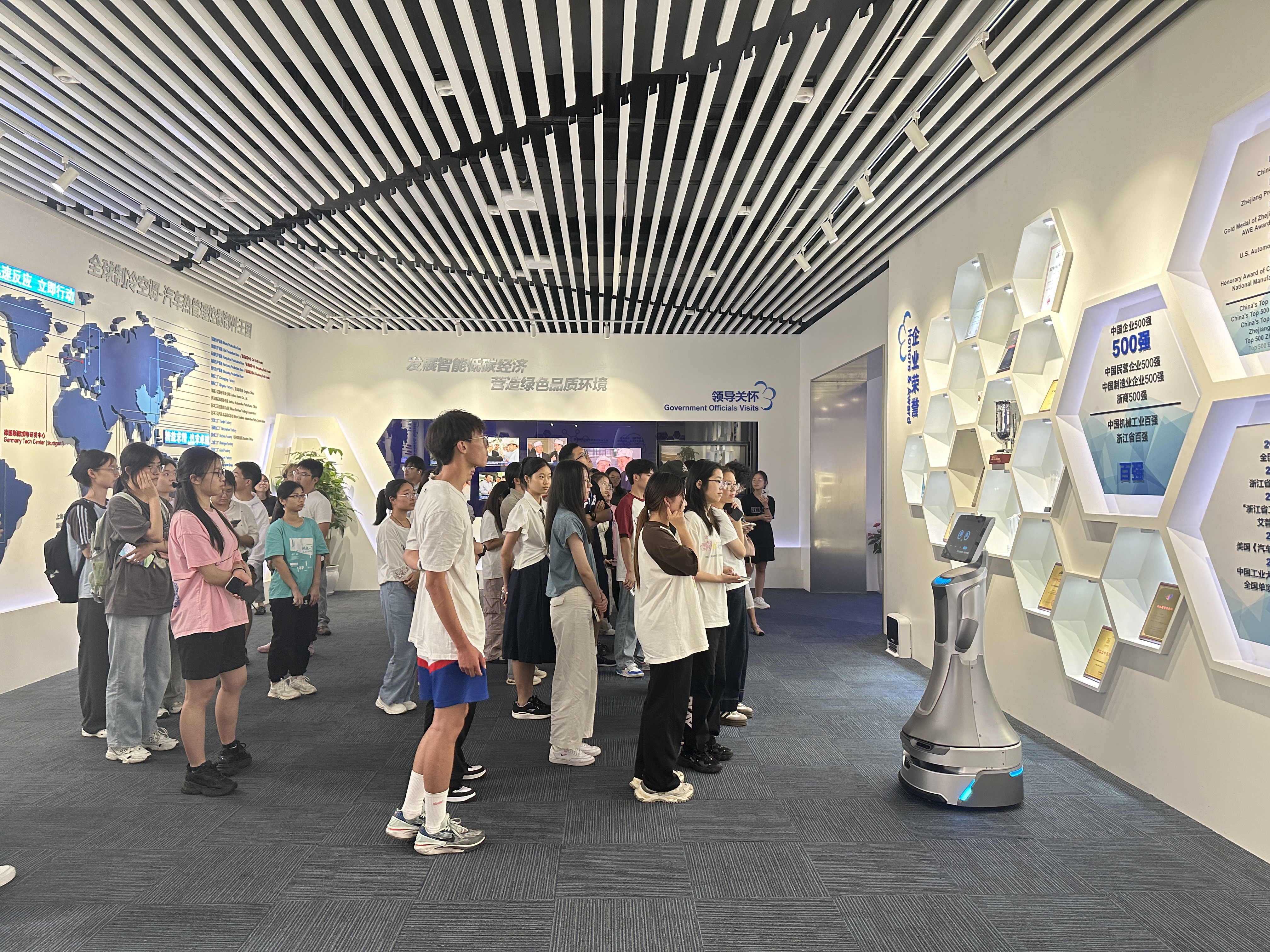 然后,在三花控股集团招聘经理倪经理的组织下,智能机器人“小花”带领大家参观三花展厅。通过“小花”的介绍,大家了解了三花的历史、荣誉、主要产品、全球布局、研发中心、专利数量和研发人才等情况,对企业有了更深刻的认识。