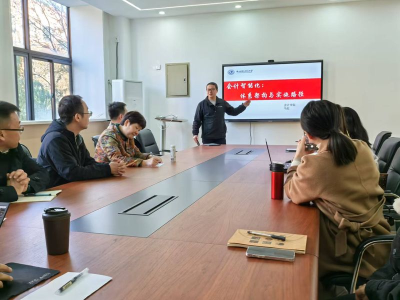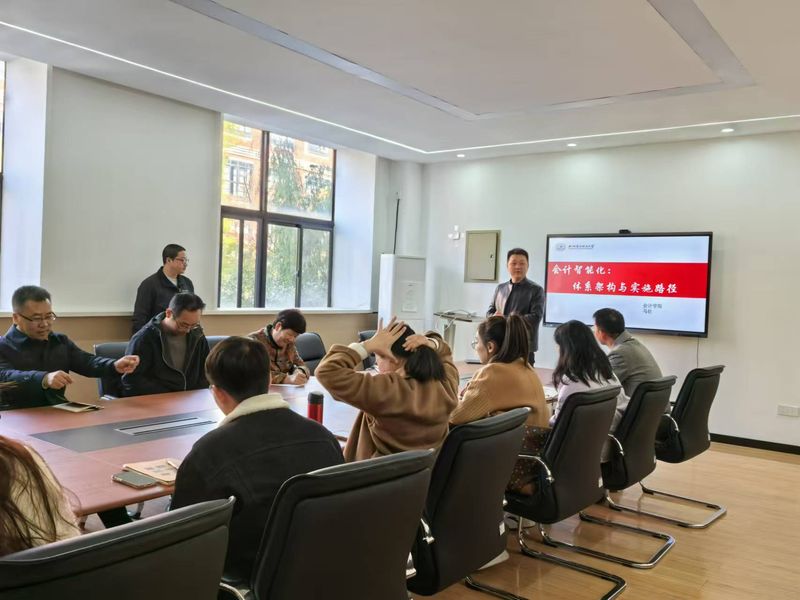 2024年11月29日下午,会计学院在9教226会议室举办了“会计智能化:体系架构与实施路径”教学研讨会。会议由谢会丽老师主持,会计信息中心马壮老师主讲,学院部分骨干教师参会。