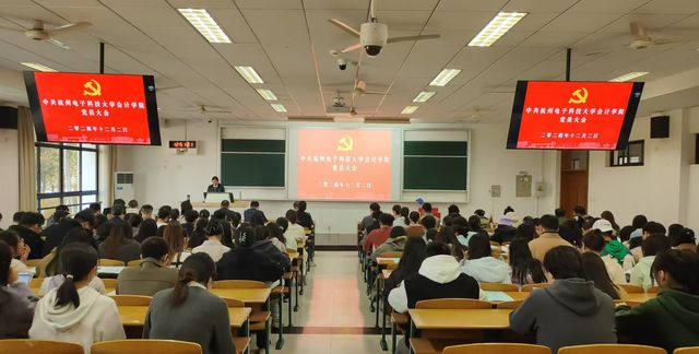 12月2日,中共杭州电子科技大学会计学院党员大会在12教114召开,选举学院新一届党委委员和纪委委员。大会由学院党委副书记兼纪委书记贾鹏飞主持,学院党政班子成员、11个师生党支部共150名正式党员参加会议。