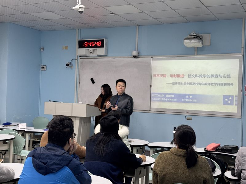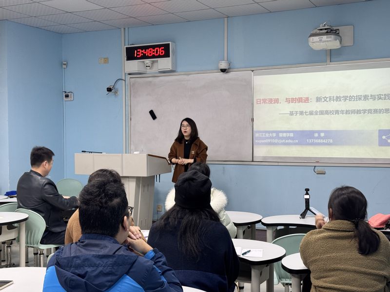 近日,一场关于新文科教学实践的深入交流会在第七届全国高校青年教师教学竞赛的背景下举行。此次活动中,浙江工业大学的徐攀副教授作为主讲嘉宾,以其在教学和科研领域的深厚积淀,为会计学院、自动化学院、通信学院、管理学院和马克思主义学院的老师们带来了颇具启发的经验分享。