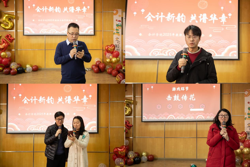 祥龙摆尾辞旧岁,灵蛇纳福启新程。2025年1月3日下午,会计学院2025年新年联欢会圆满举行。学院领导班子出席活动,全院教职工齐聚一堂,欢庆新年。此次联欢会不仅是对过去一年辛勤工作的总结,更是对未来一年美好憧憬的展望。