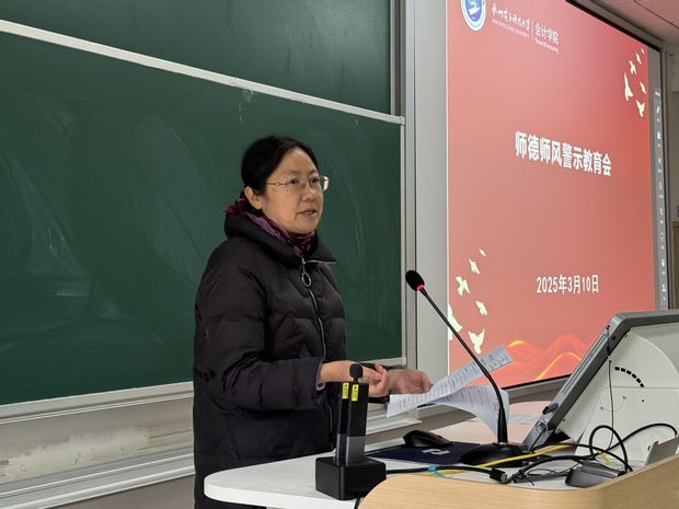 3月10日下午,会计学院在12教108教室召开全院教职工大会暨师德师风专题教育会,围绕师德师风专题教育、警示教育、学术诚信等方面展开深入交流与学习。会计学院党委书记徐兵主持,学院领导班子成员、全体教职工参加会议。