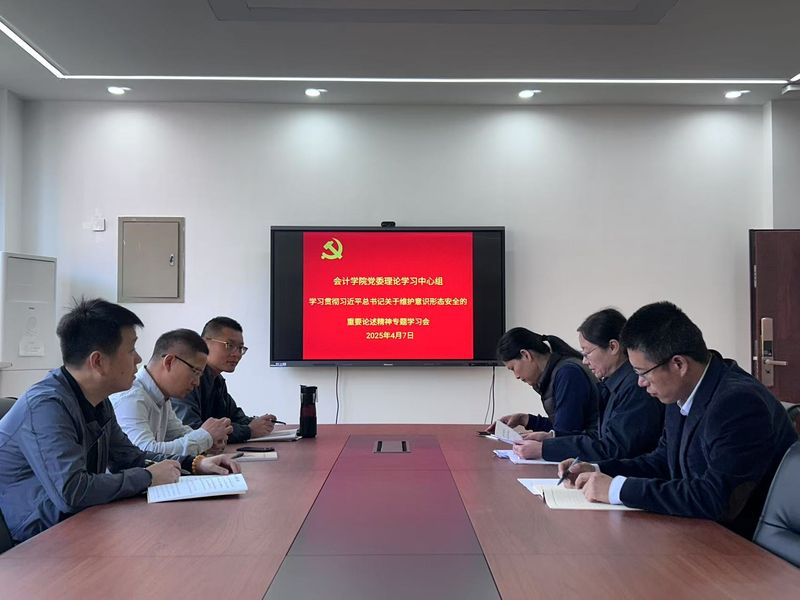 4月7日上午,会计学院党委理论学习中心组召开学习会,专题学习习近平总书记关于维护意识形态安全的重要论述。学院党委书记徐兵主持会议并作主题发言,学院党委理论学习中心组成员参加会议。