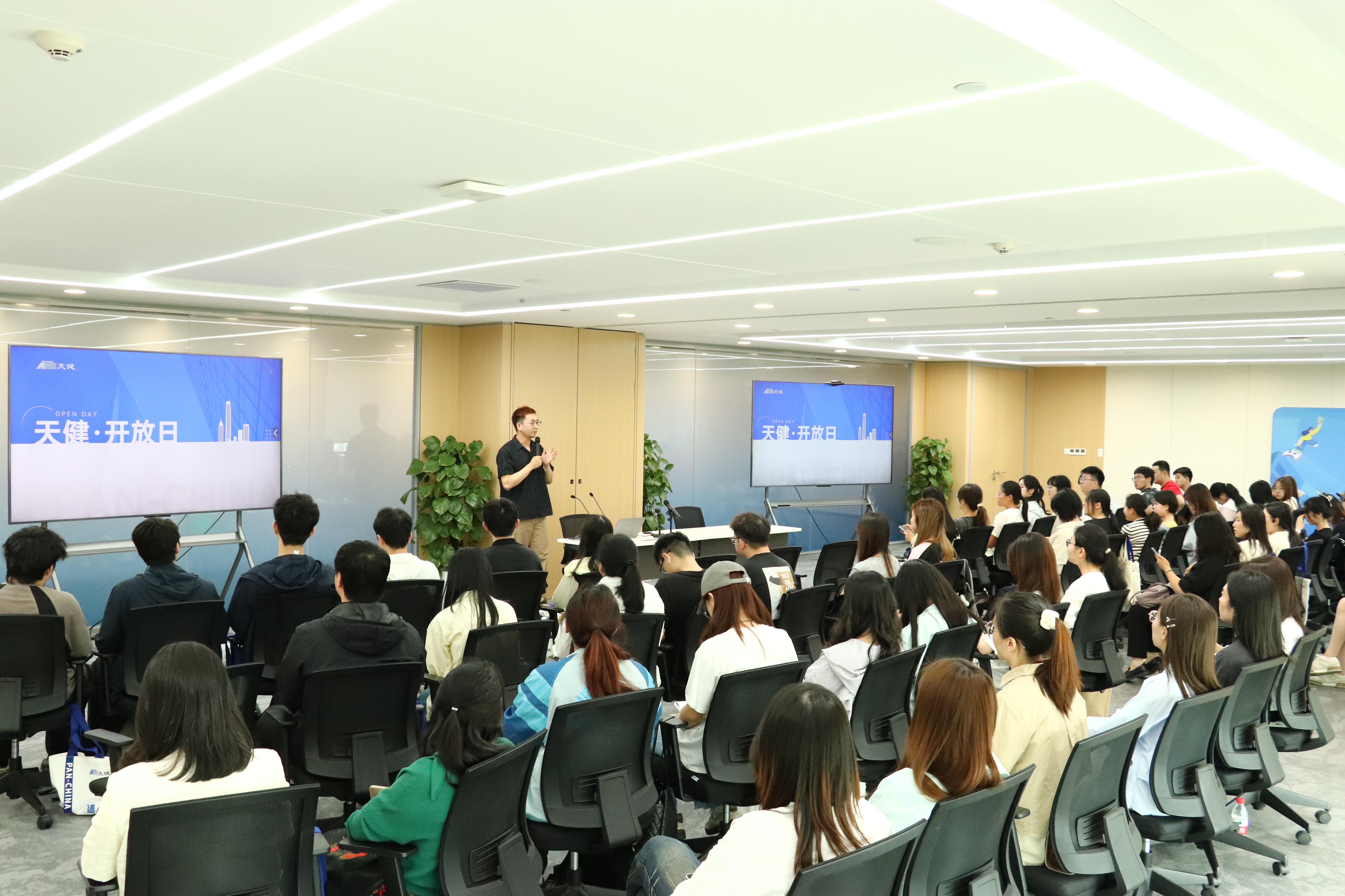 然后,天健HR富金威经理从天健基本情况、人才培养、校园招聘、企业文化生活等多方面为大家做了详细介绍。他针对大家比较关心的实习相关的板块做了详细说明:实习生的工作内容包括各基础科目底稿编制,细节测试、凭证测试,银行流水核对、函证、监盘等;实习项目类型包括大型企业及上市公司年报审计,IPO项目,企业并购重组、尽职调查等。