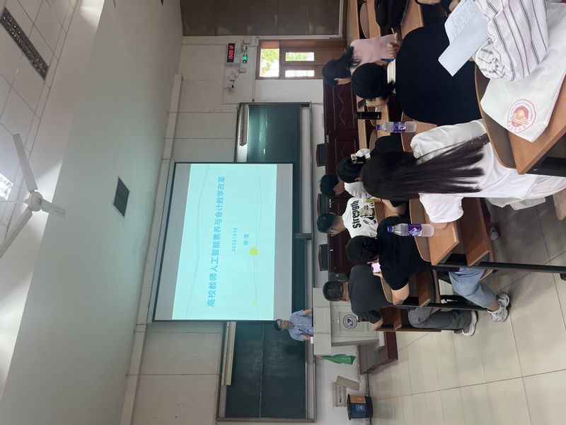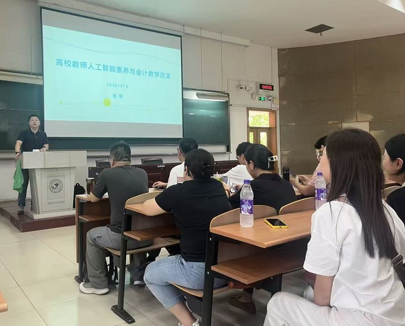 在人工智能的时代浪潮下,科技与教育的深度融合正引领财会领域经历前所未有的变革。为了更好的提升学院教师认真智能素养与应用能力,推动教师角色从知识传授向育人赋能转型,促进教育教学创新提质,会计学院于10月15日下午1:30,在6教中129举办了以“高校教师人工智能素养与会计教学改革”为主题的教学讲座。本次会议由学院副院长贾勇老师主持,会计实验工程教学中心主任杨莹老师主讲,学院全体教师参加会议。