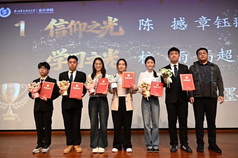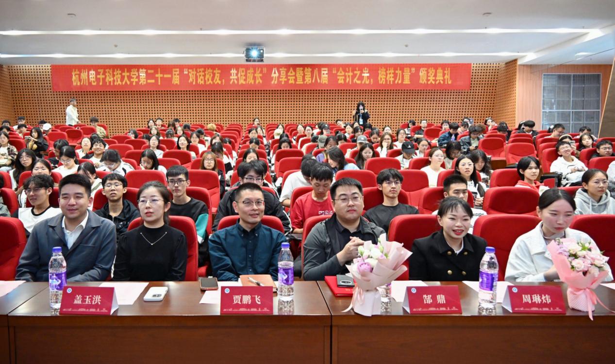 10月25日下午,由会计学院主办,会计学会、会计学院学生会承办的第二十一届“对话校友,共促成长”分享会暨第八届“会计之光,榜样力量”颁奖典礼在4教127报告厅成功举行。本次活动邀请了开源证券股份有限公司战略客户部成员兼内核委员、2015届本科、2018届研究生校友郜鼎,国家税务总局嵊州市税务局干部、2015届本科校友周琳炜,温州市昆阳镇人民政府干部、2024届本科校友谢礼扬参与分享。会计学院党委副书记兼纪委书记贾鹏飞、团委书记盖玉洪、团委副书记金冠舟出席活动。