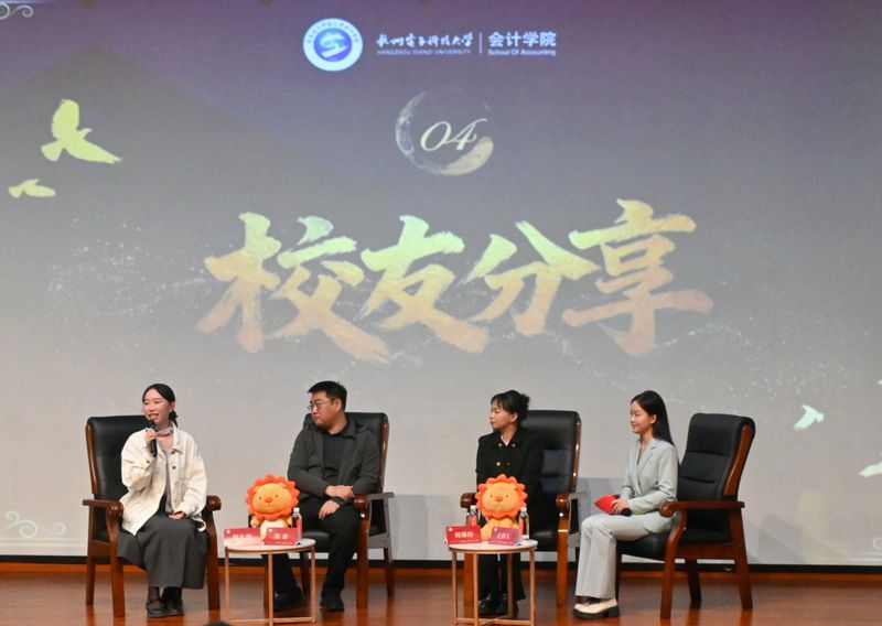 贾鹏飞代表学院致辞,对返校的各位校友表示热烈欢迎,衷心感谢校友们长期以来对母校的关怀与支持。他指出,校友是学校最宝贵的财富,也是学院永远的骄傲,校友们卓越的成就为“杭电会计人”这个名字增添了光彩。近年来,学院始终围绕立德树人根本任务,用心为学生搭建成长舞台,育人成果丰硕,综合表现亮点纷呈。期待此次分享会能为同学们驱散迷茫、点亮前路。