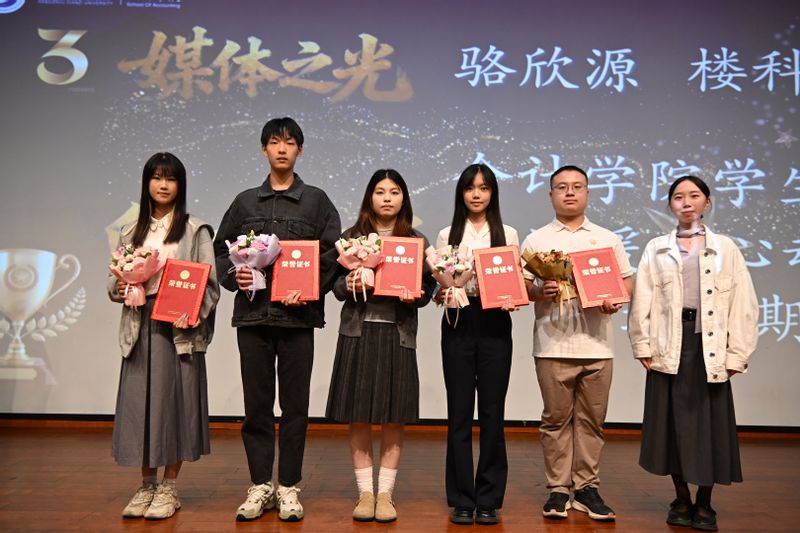 优秀校友为第八届“会计之光,榜样力量”获得者颁奖。通过表彰在学业、文体、科研、社会实践、志愿服务等多个领域表现卓越的优秀个人与团体,充分发挥示范引领和传帮带作用,进一步激励广大青年学子争先创优、见贤思齐。