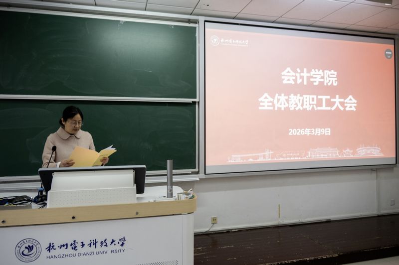 3月9日下午,会计学院在12教108教室召开全体教职工大会,围绕师德师风、意识形态、安全稳定和学术诚信等方面展开深入学习和交流。会议由学院党委书记徐兵主持,学院领导班子成员、全体教职工参加会议。